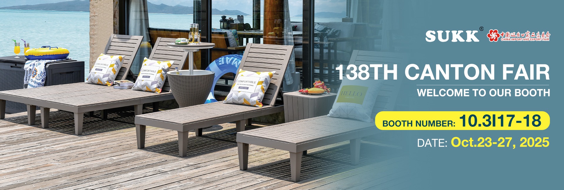 主な製品:サンラウンジャー、ソファセット/屋外テーブルと椅子セット、クーラー、収納ボックス